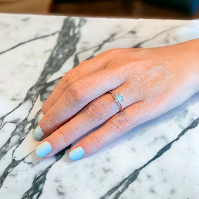 ANILLO DE COMPROMISO Anillo De Compromiso Oro 14k Con Moissanita 0.50ct que es de 5mm de diámetro y certificado. La moissanita es un mineral raro y natural, también conocido como carburo de silicio, que fue descubierto por primera vez por el químico ganador del Premio Nobel, el Dr. Henri Moissan, en el lugar donde cayó un meteorito masivo en Arizona. Esta nueva piedra fue nombrada "moissanite" en su honor. No fue hasta finales de los años 90 que los científicos, que trabajaban en un laboratorio de investigación ubicado en Research Triangle Park, Carolina del Norte, desarrollaron el innovador proceso de crecimiento térmico que crea cristales de carburo de silicio. Estos cristales se transforman en piedras preciosas de moissanita que compiten con cualquier piedra preciosa natural en fuego y brillo. Estas gemas artificiales son más duraderas que cualquier otra piedra preciosa popular como el diamante, el zafiro, el rubí o la esmeralda. Tu compra Incluye: Estuche de Regalo Broqueles Certificado de Autenticidad Envío Gratis Los anillos se hacen a la medida y en promedio estan listos el mismo día que se pagó o al día siguiente hábil. El envío es gratis y express con entrega al siguiente día hábil. La calidad de los materiales esta 100% garantizada Tiempos de entrega pueden variar por temporadas altas, tales como Navidad, San Valentin, Día de las madres. Los tiempos de entrega de la paquetería pueden verse afectados por factores externos a la paquetería como desastres naturales o manifestaciones por mencionar algunos ejemplos.