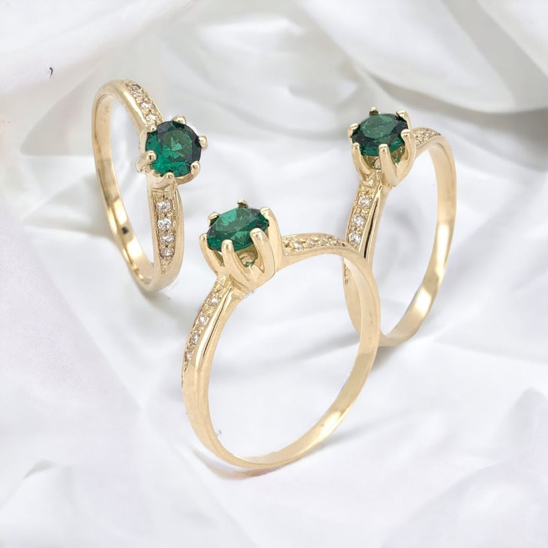 ANILLO DE COMPROMISO Oro 10k con Esmeralda Corindón de 5mm de diámetro y Zirconias laterales (Fotos Reales para referencia) Tu compra Incluye: Estuche de Regalo Aretes de plata de Regalo Envío Gratis La calidad de los materiales esta 100% garantizada