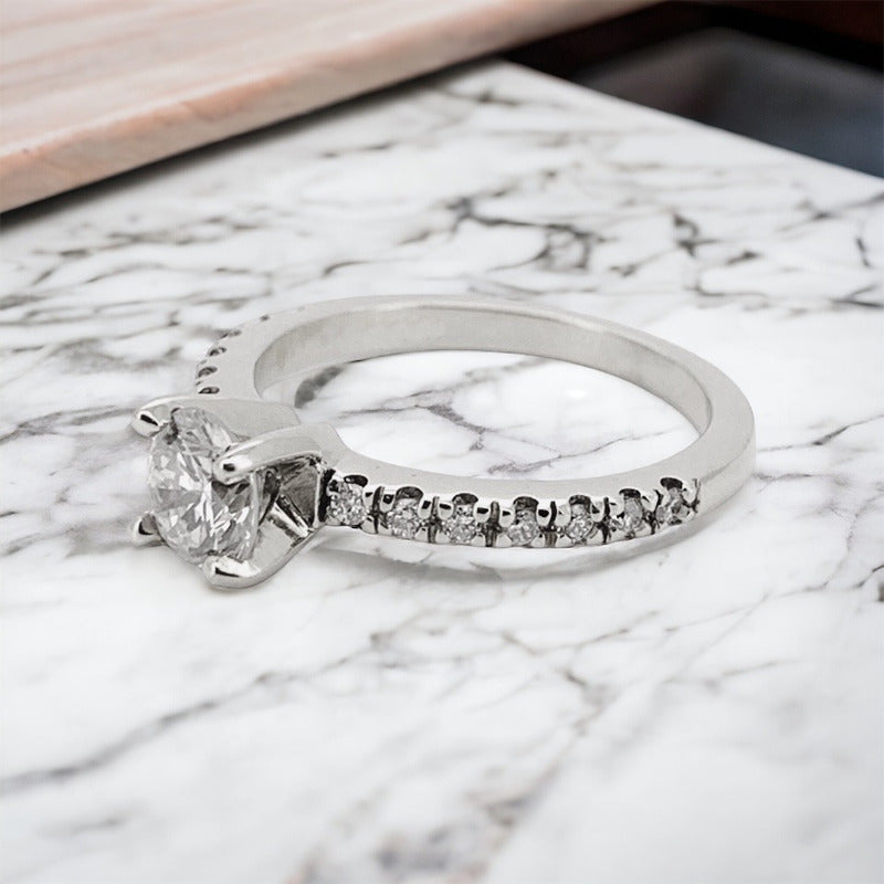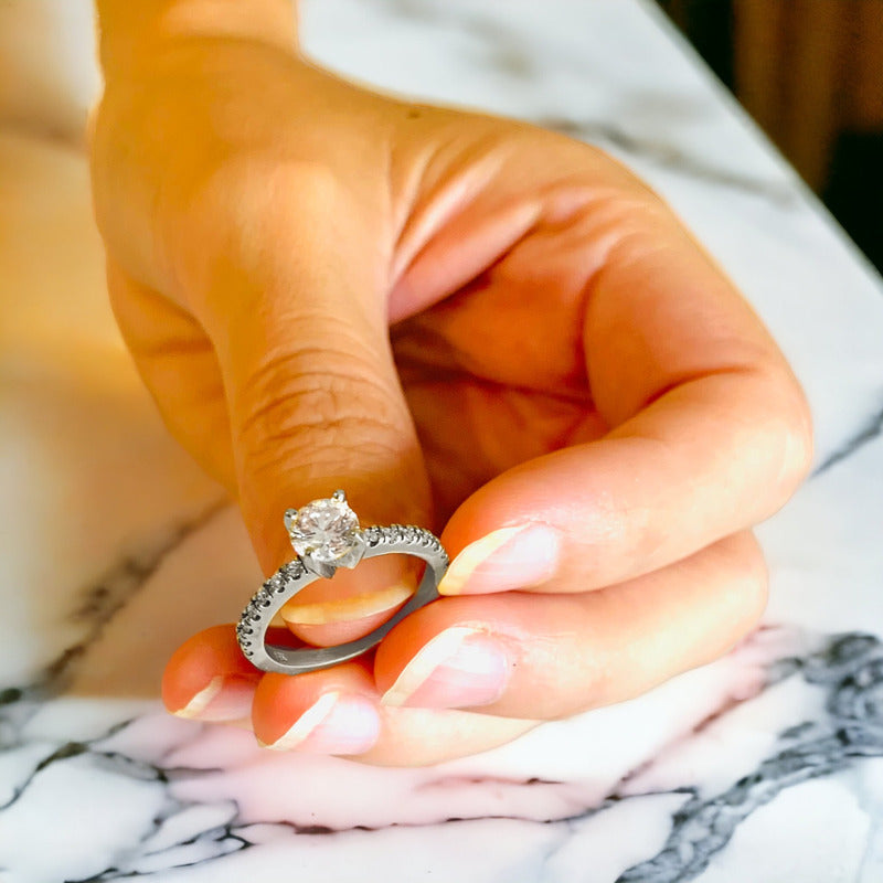 Hermoso Anillo de Compromiso en oro de 14k con Moissanita Central de 1.00ct y moissanitas pequeñas que suman 0.28ct. Peso total de la pieza en moissanitas 1.28ct Tu compra Incluye: Estuche de Regalo (Modelo sujeto a disponibilidad) Certificado de autenticidad Broqueles de Plata de regalo Envío Gratis La calidad de los materiales está 100% garantizada de por vida directamente con nosotros.