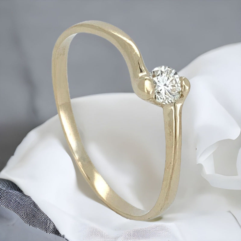 Anillo Promesa Oro Amarillo 14k Brillante Ruso Slim