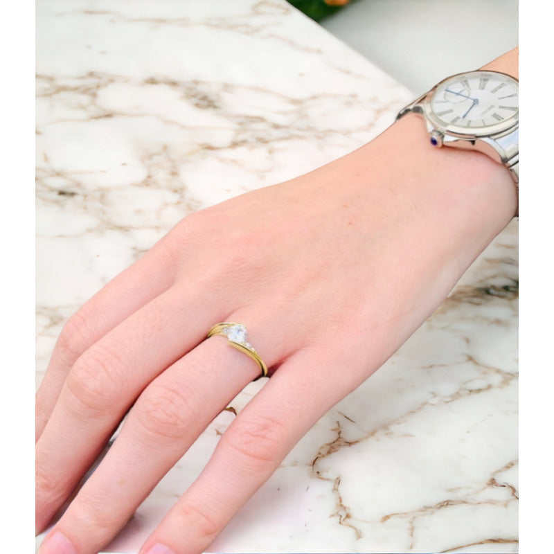 Anillo Compromiso Oro Amarillo 10k Brillante Premium Trinity