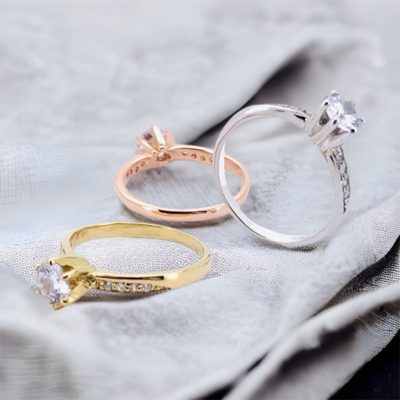 ANILLO DE COMPROMISO Oro 14k con Zirconias Brillante Tu compra Incluye: Estuche de Regalo Broqueles Envío Gratis La calidad de los materiales esta 100% garantizada