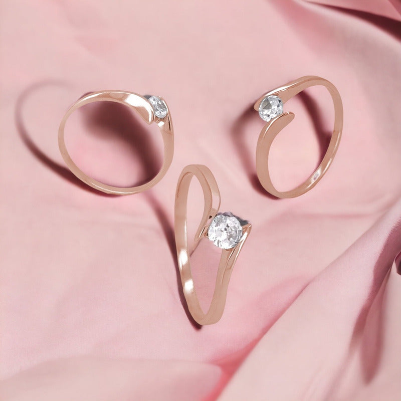 Anillo De Compromiso Oro Solido 14k Con Brillante Swarovski