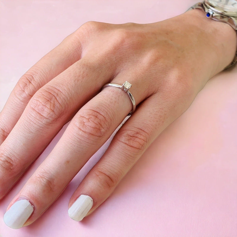 Anillo De Compromiso Oro 18k Diamante Natural .12ct