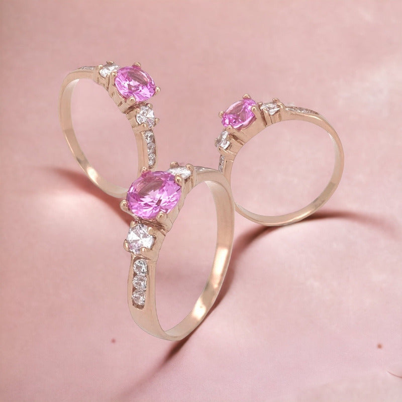 Anillo Compromiso Oro Rosa 14k Zafiro Rosa Video
